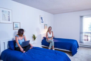 | レジデンス(Shared Apartment Standard) | サンディエゴの別の区にある男女混合の手頃なレジデンスで、寝室の他、バスルーム、キッチン、リビングルームなどが共用です。2週間に1回清掃が入ります。 部屋の種類:1人部屋、2人部屋、共用バスルーム